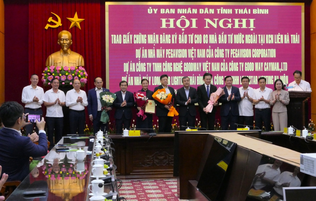 Chiều ngày 04/10/2023, UBND tỉnh Thái Bình đã tổ chức lễ trao Giấy chứng nhận đăng ký đầu tư cho 3 dự án đầu tư tại Khu công nghiệp Liên Hà Thái (Thái Thụy, Thái Bình).