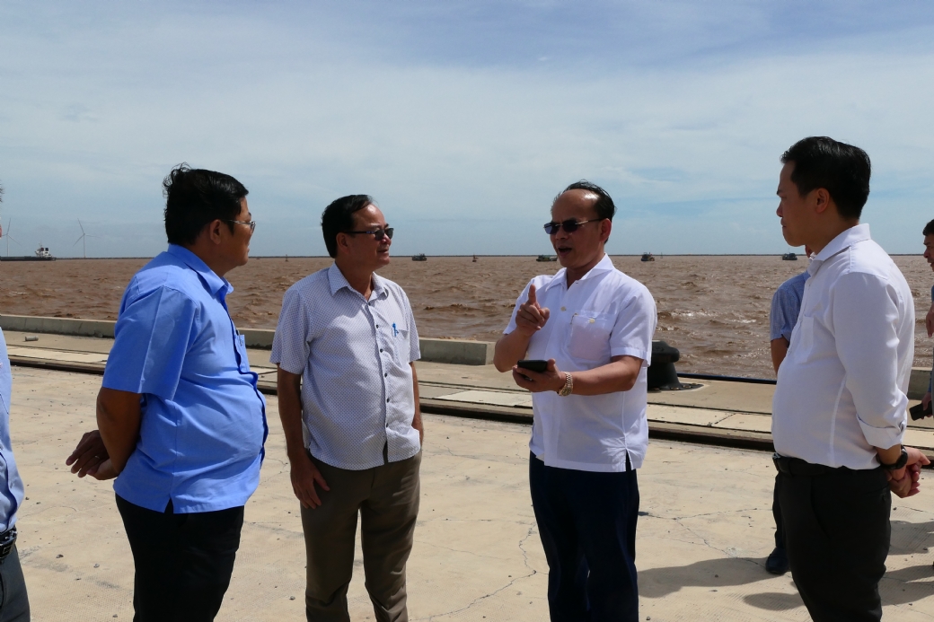 Ông Nguyễn Minh Hưng và lãnh đạo Ban Quản lý Khu kinh tế Định An trao đổi tại hiện trường