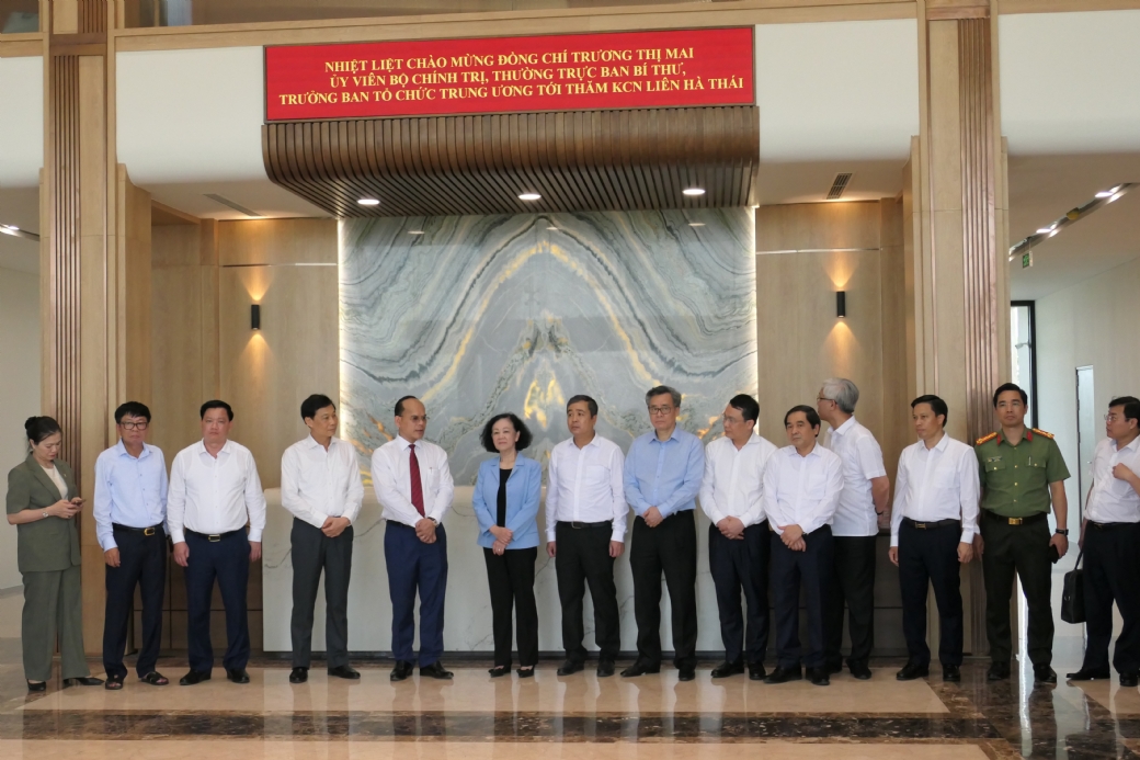 Cùng ngày 16/8, đồng chí Trương Thị Mai, Ủy viên Bộ Chính trị, Thường trực Ban Bí thư, Trưởng ban Tổ chức Trung ương cùng đoàn công tác của Trung ương và tỉnh Thái Bình tới kiểm tra việc triển khai xây dựng dự án khu công nghiệp Liên Hà Thái.