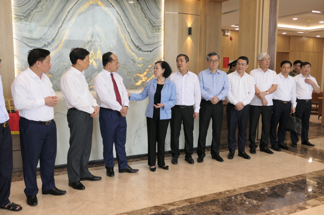 Đồng chí Trương Thị Mai, Ủy viên Bộ Chính trị, Thường trực Ban Bí thư, Trưởng ban Tổ chức Trung ương cùng đoàn công tác của Trung ương và của tỉnh trao đổi với lãnh đạo Green i-Park