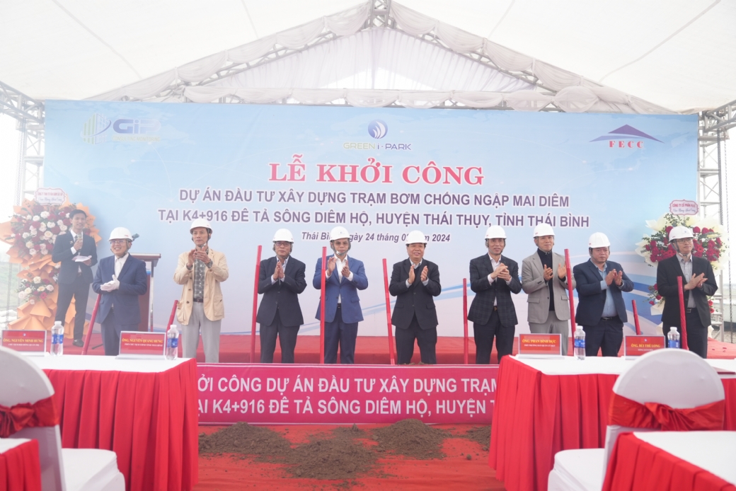 Sáng 24/2, Công ty Cổ phần Green i – Park đã tổ chức Lễ khởi công xây dựng Trạm bơm chống ngập Mai Diêm tại thị trấn Diêm Điền và xã Thụy Liên, huyện Thái Thụy.