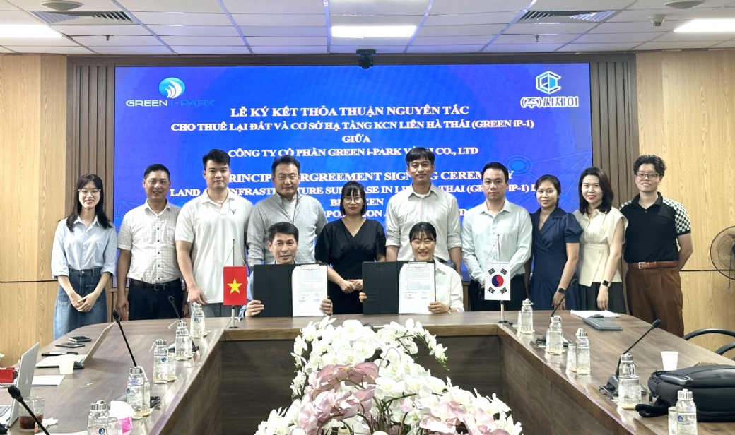 Ngày 05/4, Công ty CP Green i-Park và CJ Co., Ltd đã ký kết biên bản ghi nhớ (MOU) cho thuê lại đất và cơ sở hạ tầng sản xuất các linh kiện điện tử.