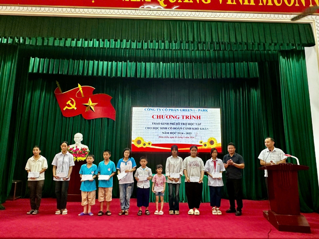 Cùng với đó, Green i-Park đã trao 20 suất quà trị giá 100 triệu đồng cho học sinh có hoàn cảnh khó khăn tại thị trấn Diêm Điền và THCS Thụy Liên.