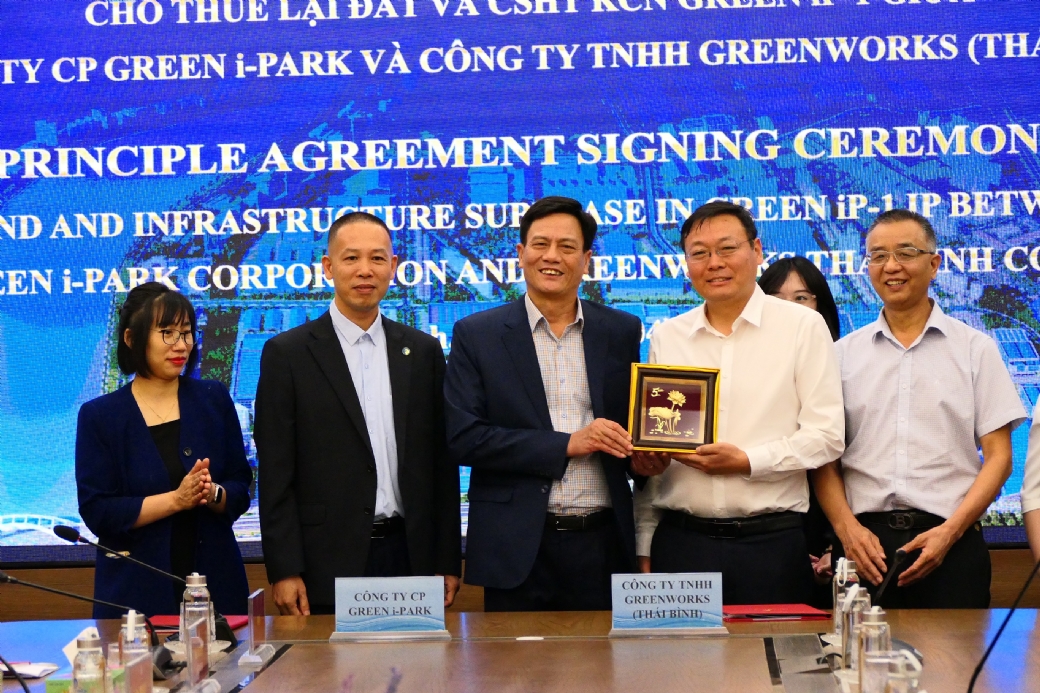 Chiều ngày 4/11/2024, Công ty CP Green i-Park và Công ty TNHH Green Works Thái Bình đã ký thỏa thuận nguyên tắc cho thuê lại đất và cơ sở hạ tầng tại Khu Công nghiệp Khu CN Green iP-1 (Thị trấn Diêm Điền, huyện Thái Thụy, Thái Bình).