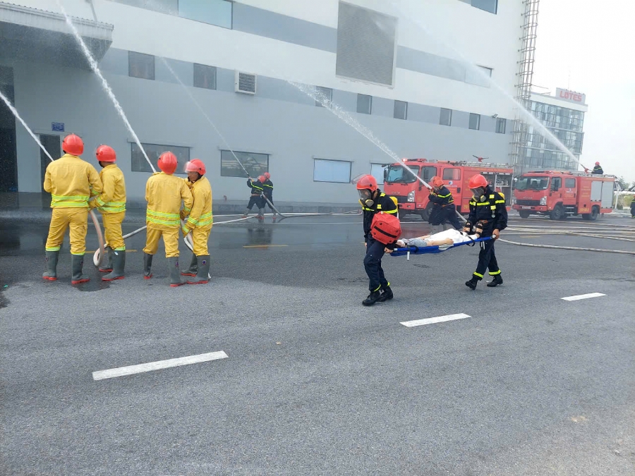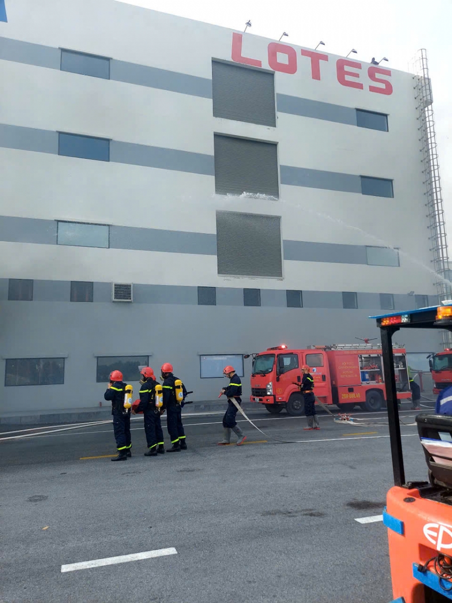 Sau khoảng 30 phút triển khai, công tác chữa cháy, cứu nạn cứu hộ đã đạt kết quả tốt. Lửa được dập tắt, số người bị thương được cấp cứu, hàng hóa tài sản được bảo quản. Cuộc diễn tập PCCC giữa GIP và Lotes được thực hiện theo đúng kế hoạch, không xảy ra sự cố nào.