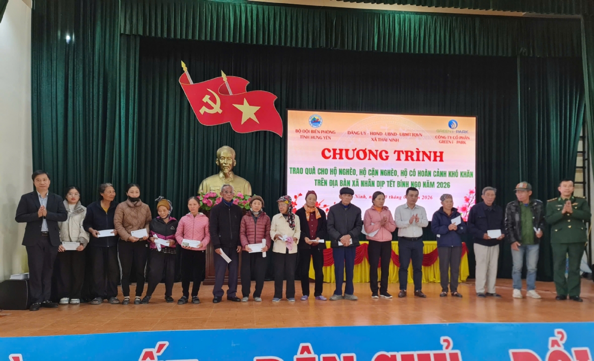 Công ty Cổ phần Green i-Park (nhà đầu tư hạ tầng Khu công nghiệp Liên Hà Thái) phối hợp với Ban Chỉ huy Bộ đội Biên phòng tỉnh (Bộ Chỉ huy Quân sự tỉnh) và lãnh đạo địa phương tổ chức thăm, trao 500 suất quà Tết tặng các hộ nghèo, cận nghèo và hộ có hoàn cảnh khó khăn trên địa bàn xã Thái Ninh.