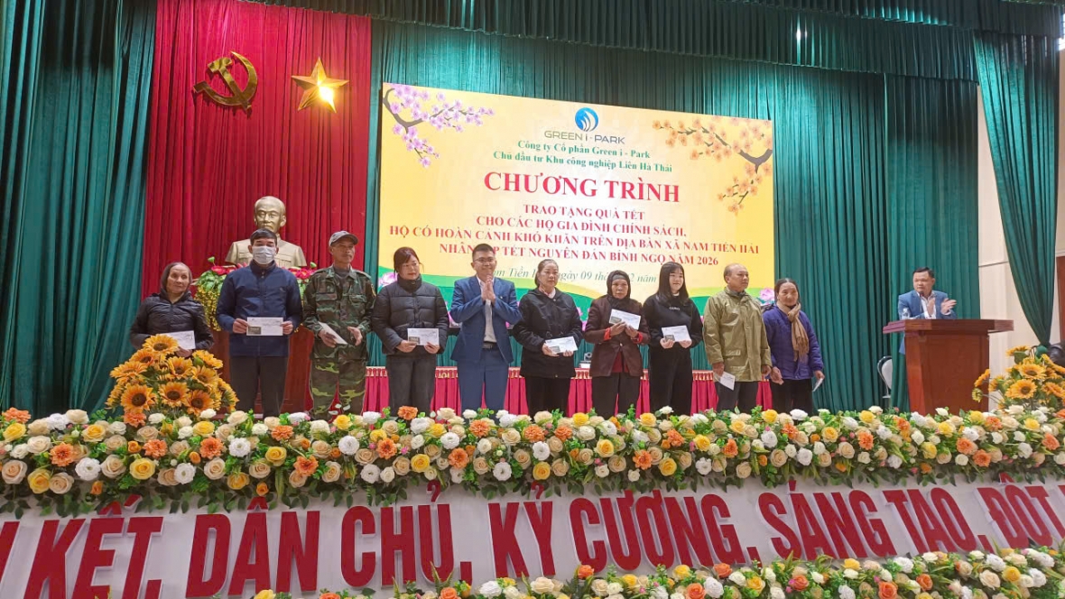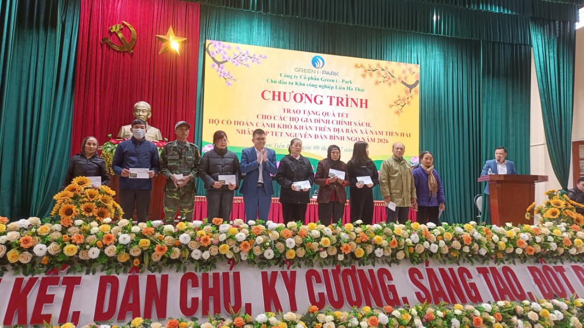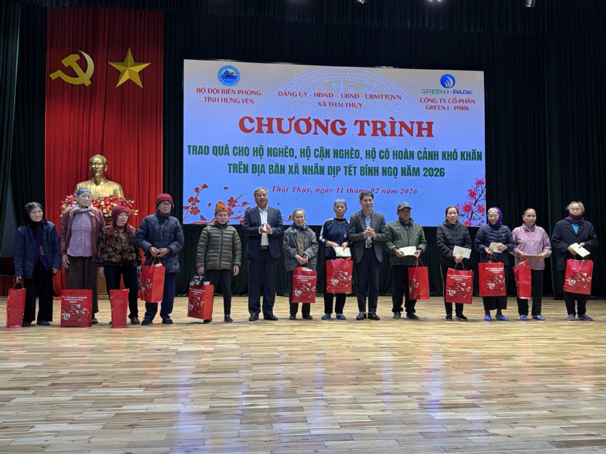 Cùng ngày, xã Thái Thụy phối hợp với Công ty Cổ phần Green i-Park tổ chức trao 1.204 suất quà Tết cho hộ nghèo, hộ cận nghèo và các gia đình có hoàn cảnh khó khăn trên địa bàn, trong đó có các hộ thuộc khu vực thực hiện dự án Khu công nghiệp Liên Hà Thái.