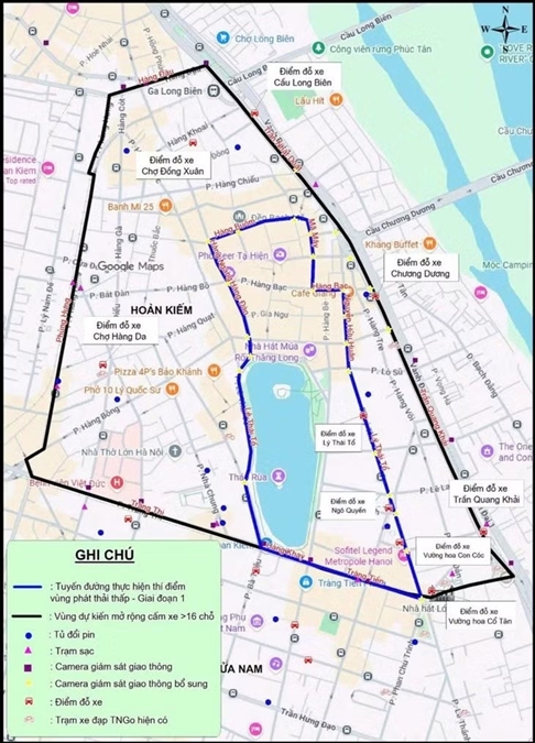 Theo lộ trình, giai đoạn 2 (từ 1/1/2027 đến 31/12/2027), Hà Nội sẽ mở rộng phạm vi thí điểm sang phường Cửa Nam, bên cạnh khu vực lõi của phường Hoàn Kiếm.